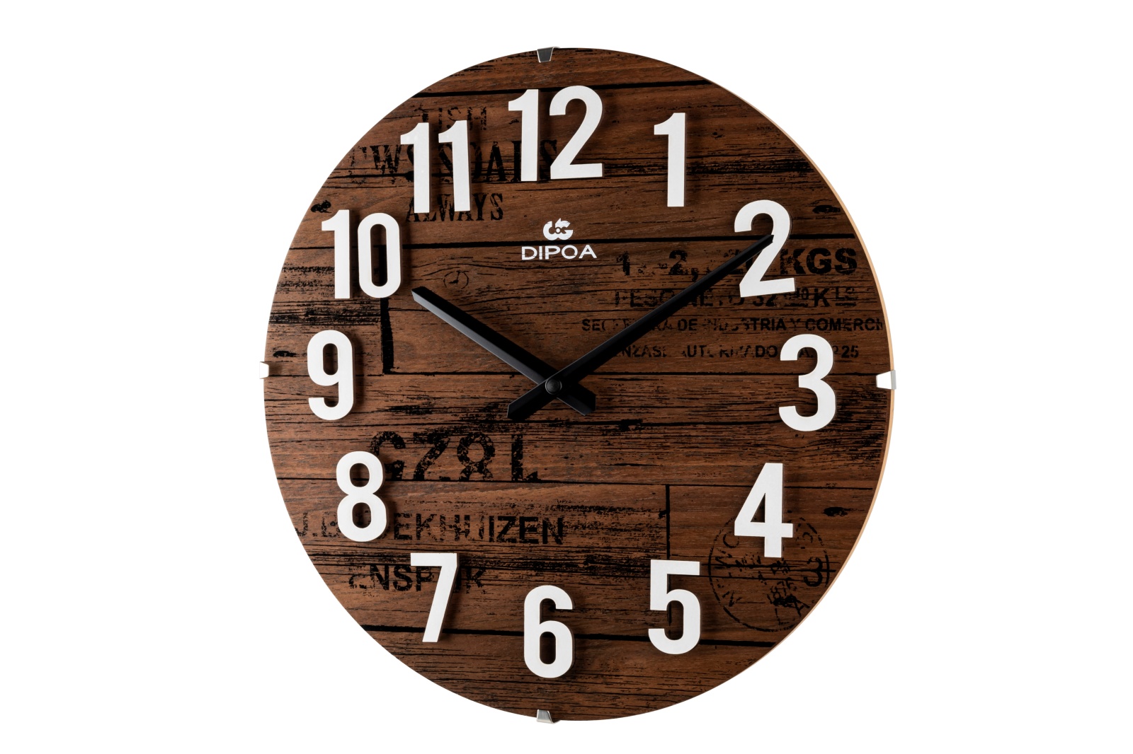 Wooden wall clock with raised 3D numerals convex glass metal glass holder