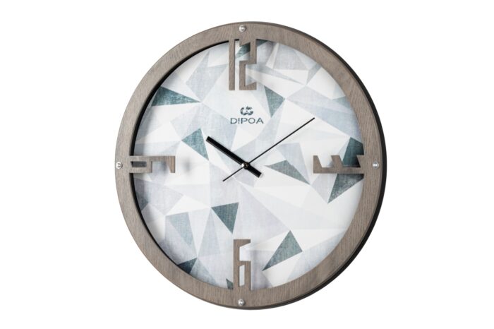 Veneered MDF case with wash grey finish laser cut numerals Flat glass
